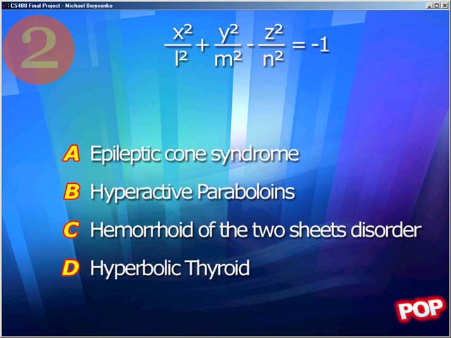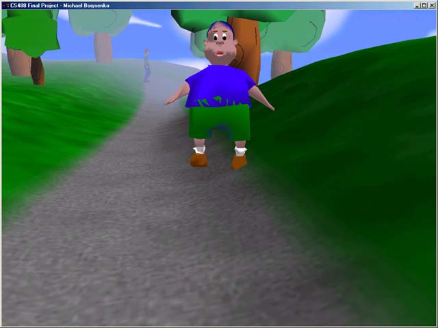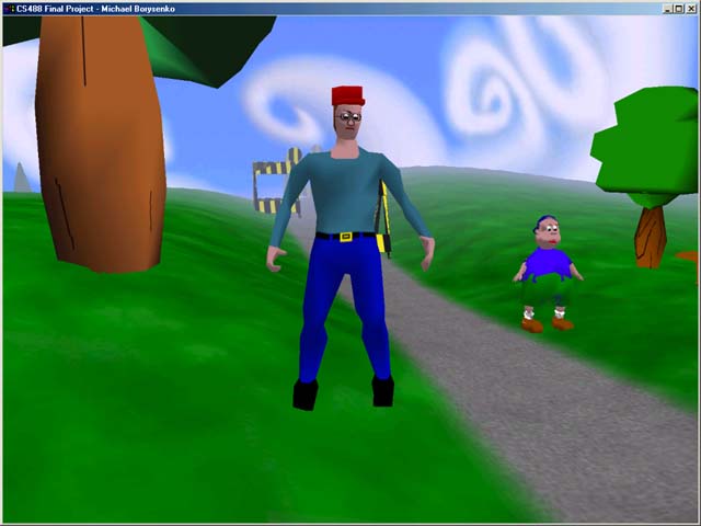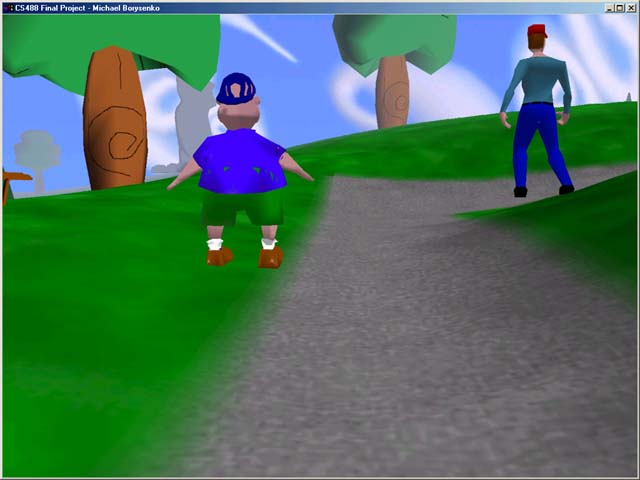 | This Lucas Art-style game features Ian Bell and his evil twin, Me-an Bell, along with a host of other features such as in-game music, sound effects, pop quizzes, rolling terrain (optimized with quad tree), and sophisticated camera control. Like many modern games, it comes complete with a beautifully rendered pre-game cinematic sequence. |
