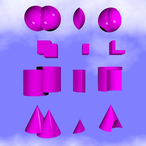 Objective 7: CSG operations have been implemented for the basic primatives (spheres, boxes, cones and cylinders).