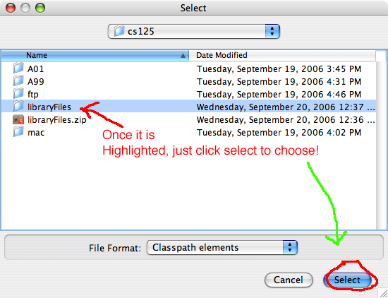 | Navigate to the folder you extracted the libraryFiles folder into, and click on libraryFiles to highlight it. Then, press Select. (DO NOT DOUBLE CLICK) | ![]() |