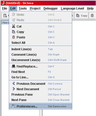 You can now close WinZip. Open DrJava and Select "Preferences" from the Edit menu. |