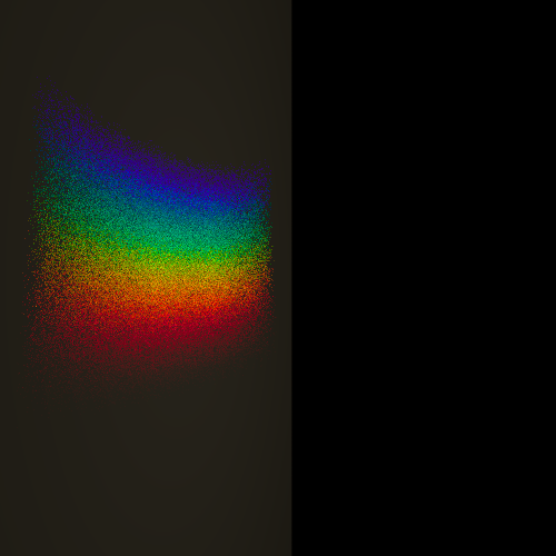 | This ray tracer encodes light not just as the typical RGB values, but instead as a function of wavelength. This makes it possible produce effects such as the casting of light through a prism into a rainbow of colours. Some of the images you see here required literally hundreds of hours of rendering time (can you guess which one?), but Dan has distributed the work to be done over multiple machines. |