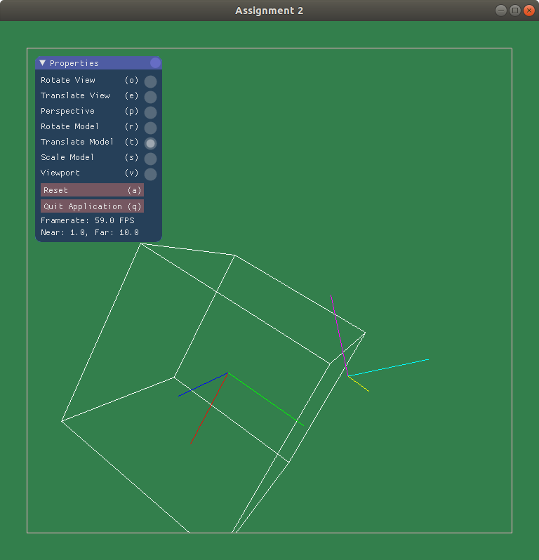 - ▢ 9. Lines are clipped to the near and far planes. The near and far planes can be changed as specified in the assignment description.