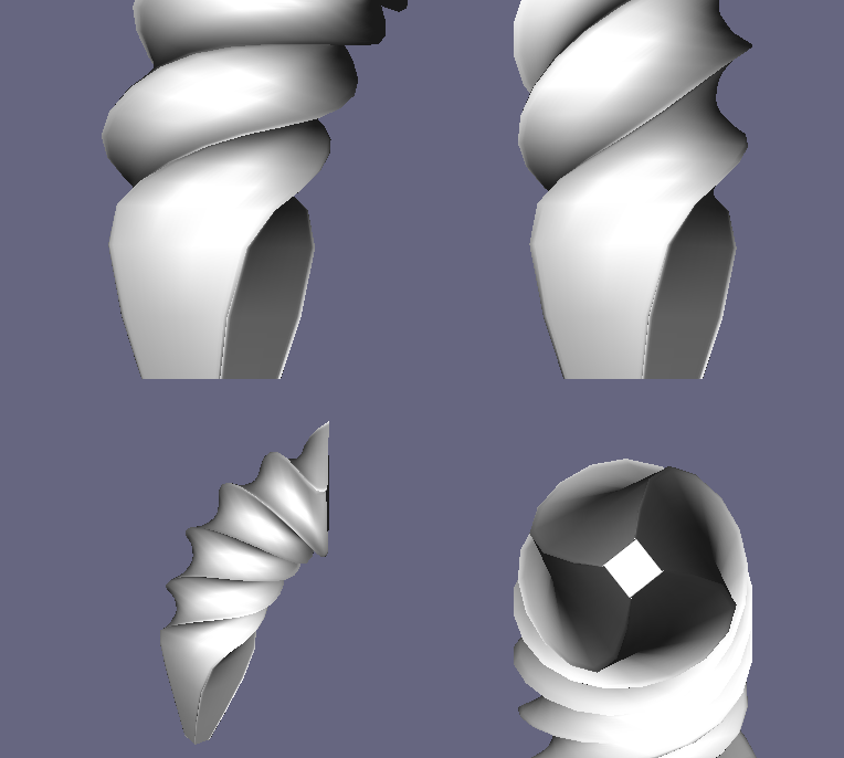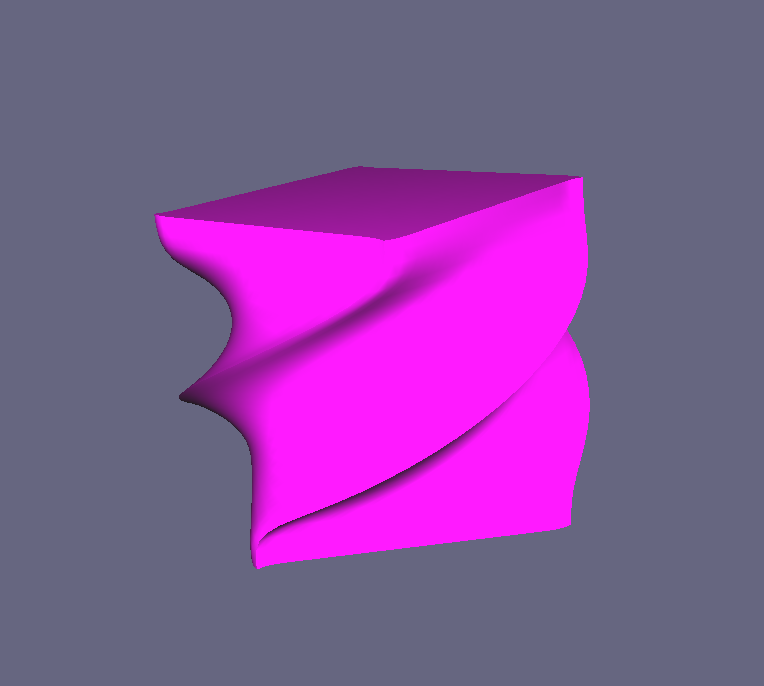 | Twist is implemented like a wrench winding the model. Bend is implemented such that the model "follows" a user defined path. |