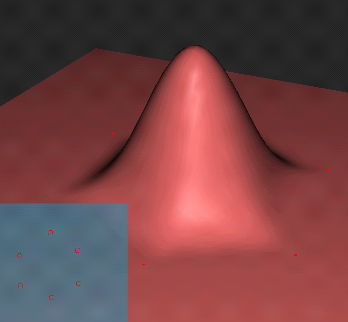 For this portion of my project I implemented a visualizer for simplex splines where the user is capable of adding knots to the domain and moving them around at will. The tessellation code simply samples the domain at uniform spacing and evaluates the spline for position and partial derivatives. An example of a cubic simplex spline over 6 knots is given (Figure 3). Anybody notice a similarity to the last homework problem!!!